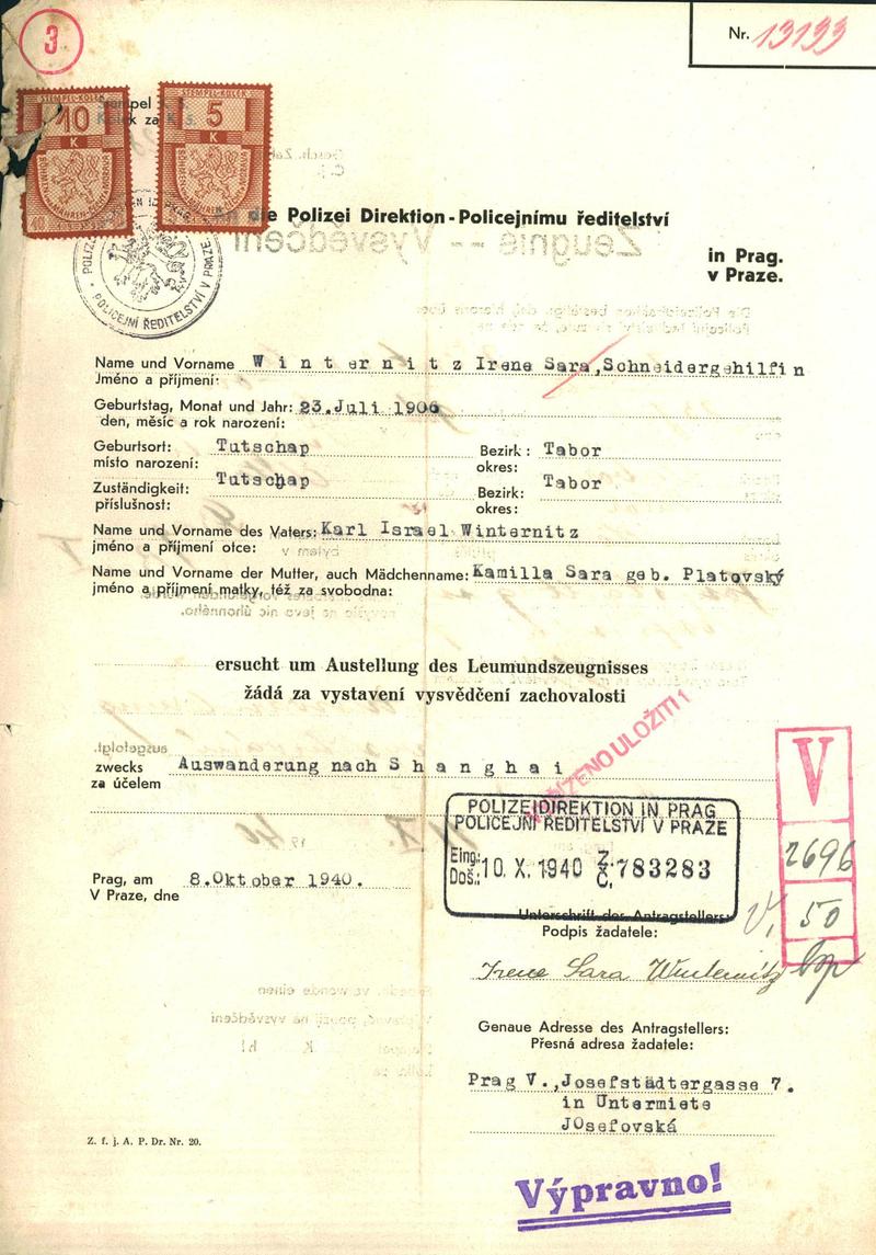 Nationalarchiv Prag > Polizei-Direktion Prag > 1931-1940 > W > Winternitzová Irena