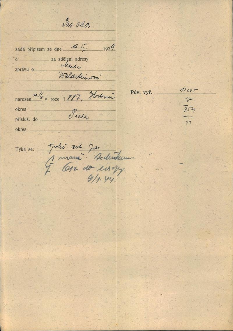 Nationalarchiv Prag > Polizei-Direktion Prag > 1931-1940 > W > Waldsteinová Marta