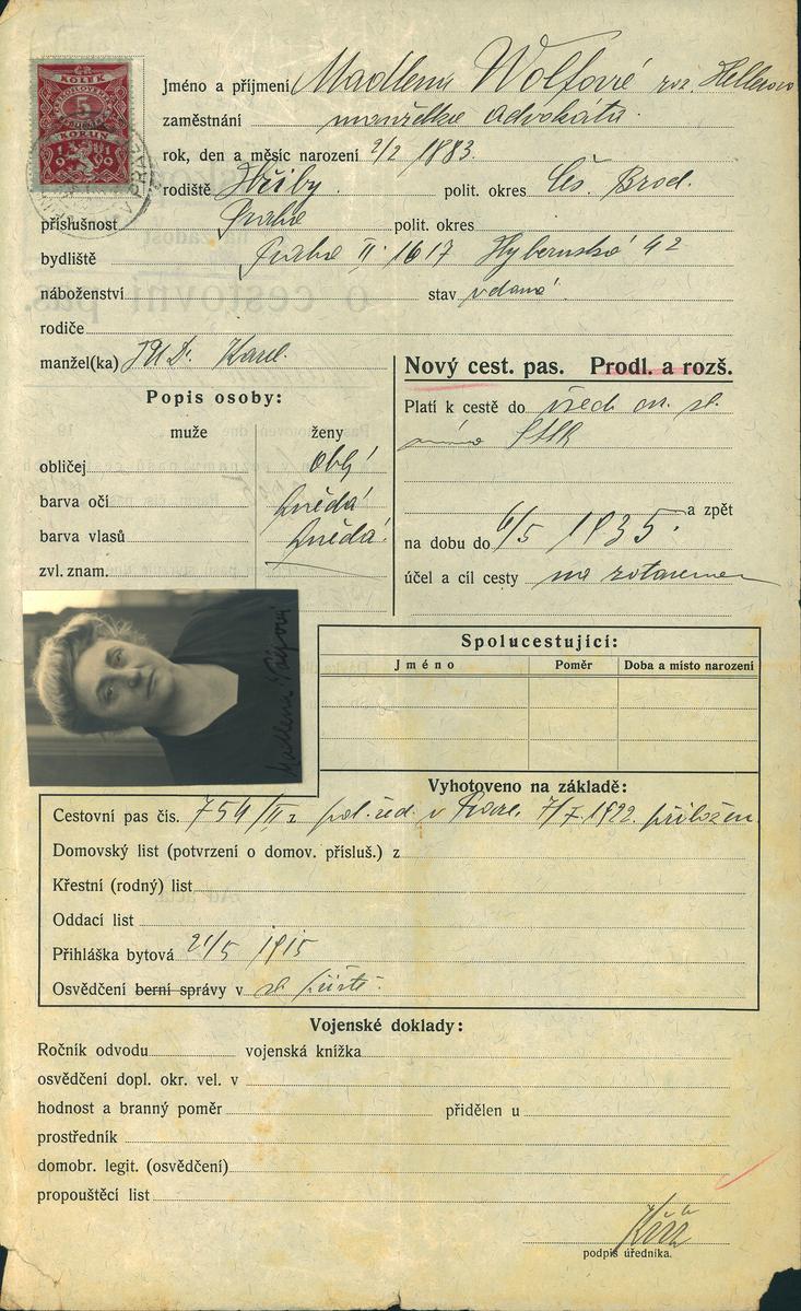 Nationalarchiv Prag > Polizei-Direktion Prag > 1931-1940 > W > Wolfová Madlena