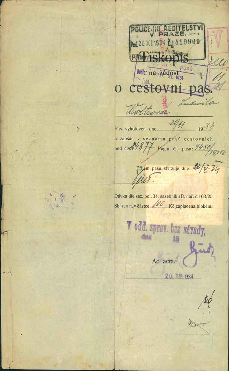 Nationalarchiv Prag > Polizei-Direktion Prag > 1931-1940 > W > Wolterová Ludmila