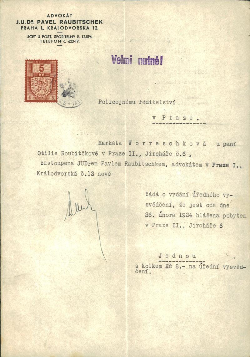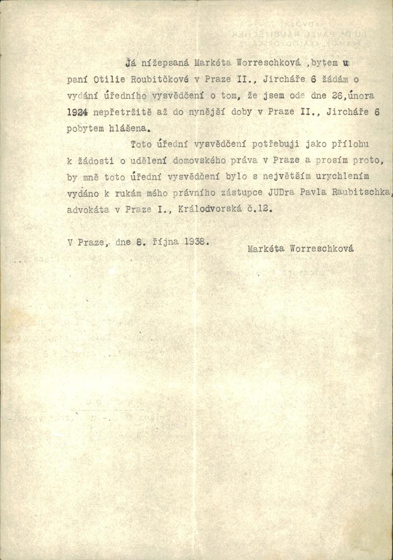 Nationalarchiv Prag > Polizei-Direktion Prag > 1931-1940 > W > Worreschková Markéta