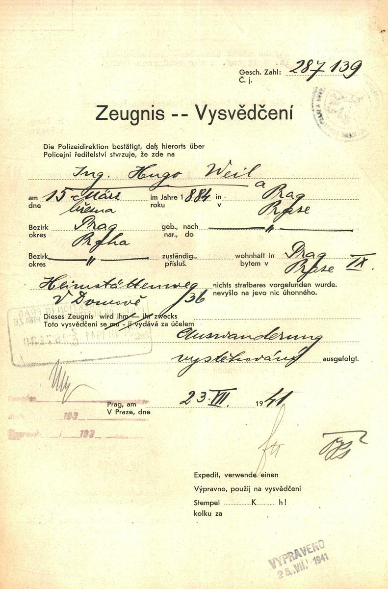 Nationalarchiv Prag > Polizei-Direktion Prag > 1941-1950 > W > Weil Hugo