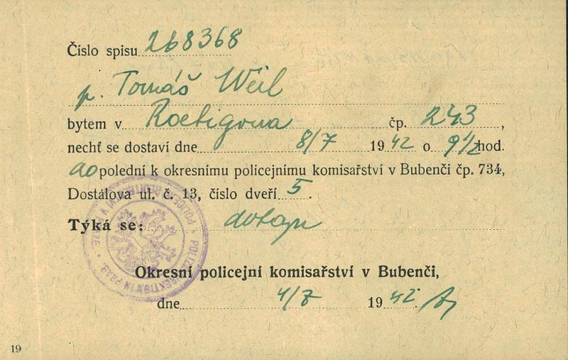Nationalarchiv Prag > Polizei-Direktion Prag > 1941-1950 > W > Weil Tomáš