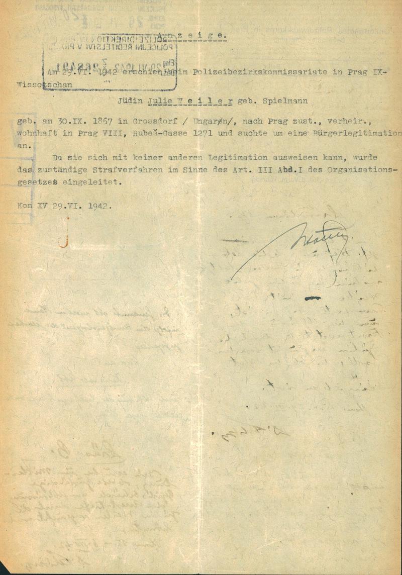 Nationalarchiv Prag > Polizei-Direktion Prag > 1941-1950 > W > Weilerová Julie