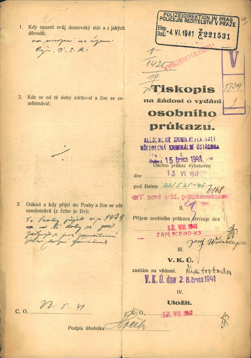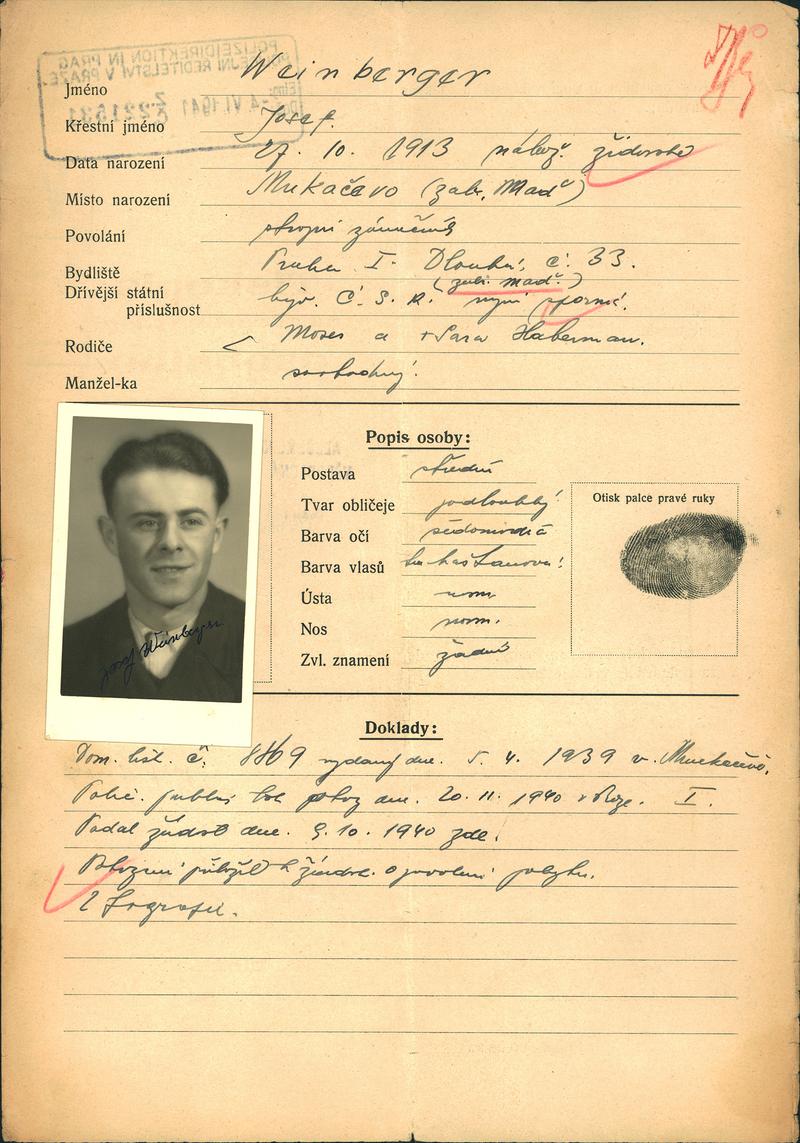 Nationalarchiv Prag > Polizei-Direktion Prag > 1941-1950 > W > Weinberger Josef