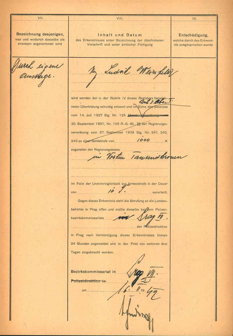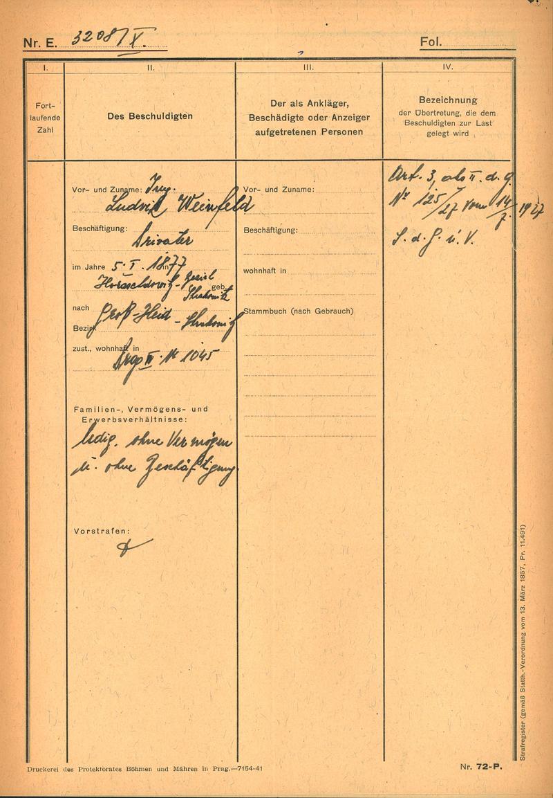 Nationalarchiv Prag > Polizei-Direktion Prag > 1941-1950 > W > Weinfeld Ludvík
