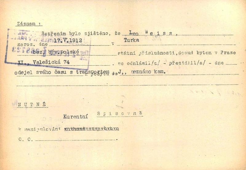 Nationalarchiv Prag > Polizei-Direktion Prag > 1941-1950 > W > Weiss Leo
