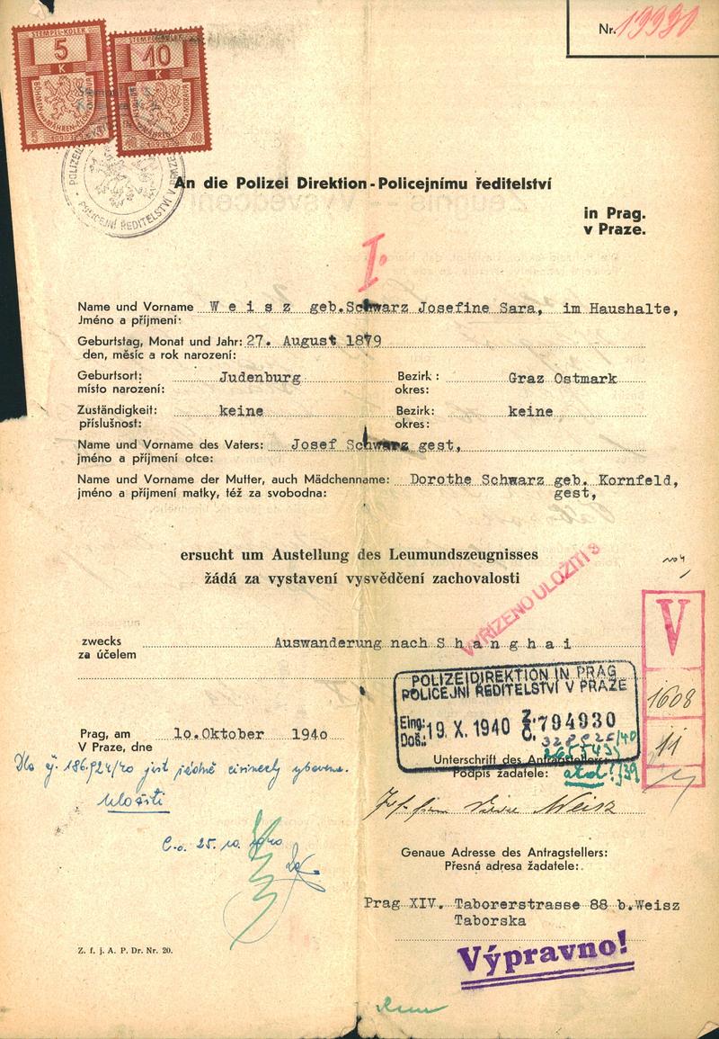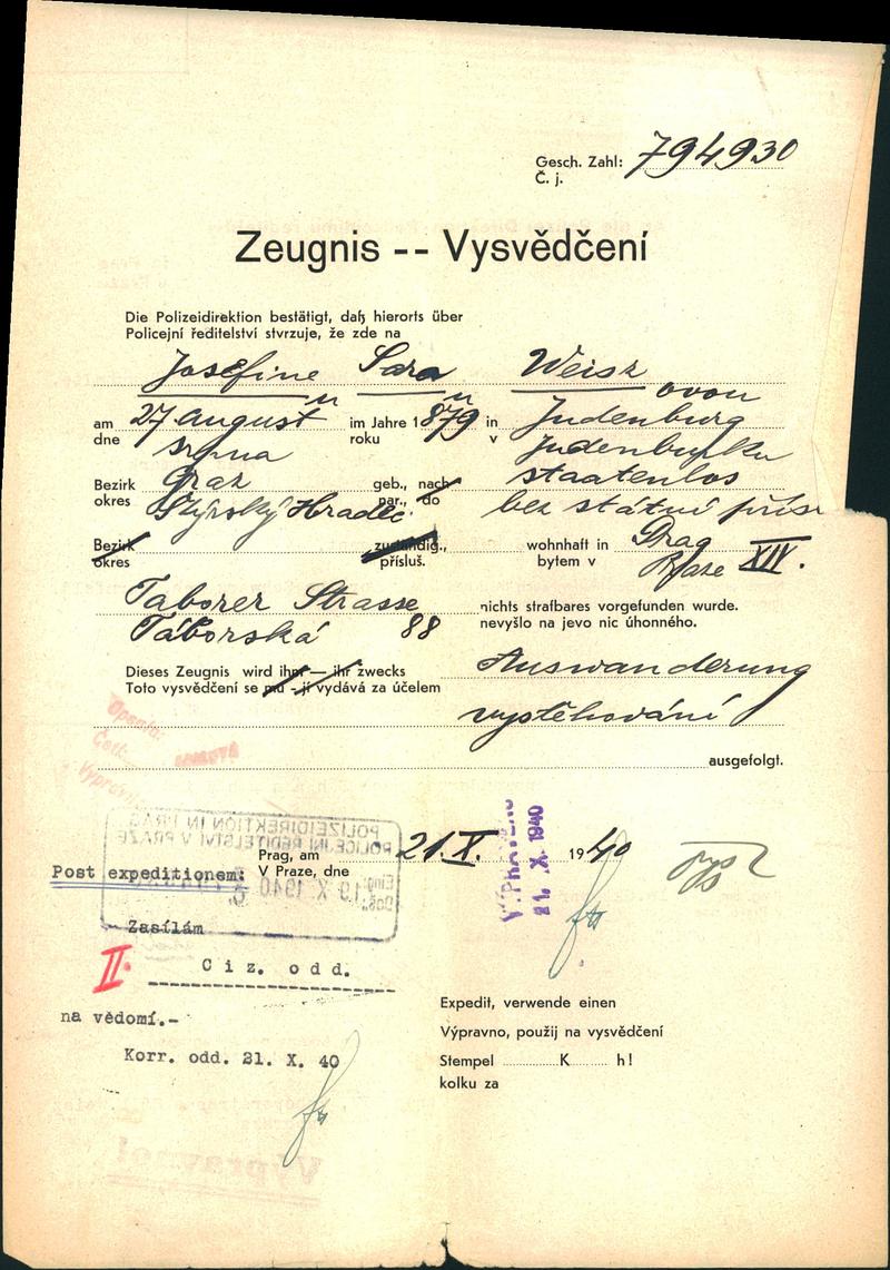 Nationalarchiv Prag > Polizei-Direktion Prag > 1941-1950 > W > Weiszová Josefina