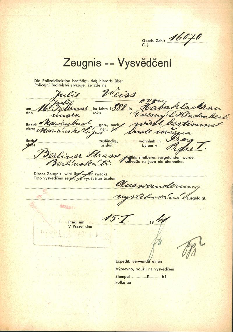 Nationalarchiv Prag > Polizei-Direktion Prag > 1941-1950 > W > Weissová Julie
