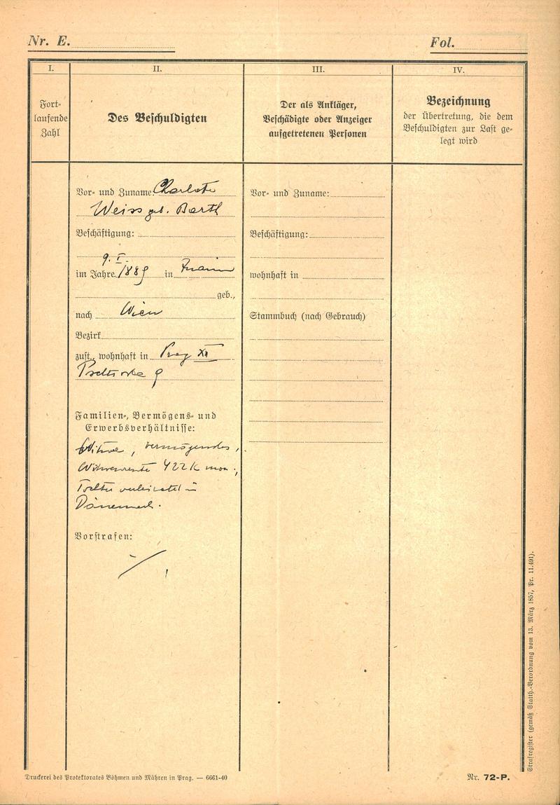 Nationalarchiv Prag > Polizei-Direktion Prag > 1941-1950 > W > Weissová Charlotta