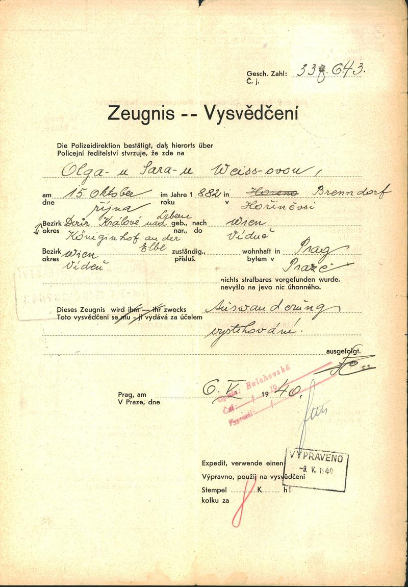Nationalarchiv Prag > Polizei-Direktion Prag > 1941-1950 > W > Weissová Olga