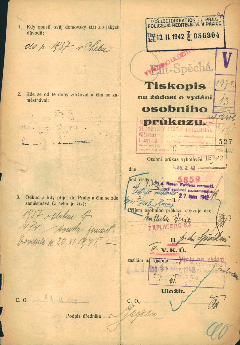 Nationalarchiv Prag > Polizei-Direktion Prag > 1941-1950 > W > Weiszová Matylda