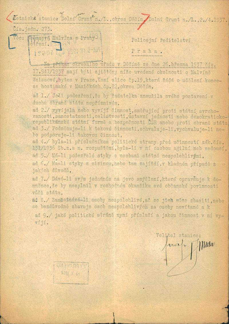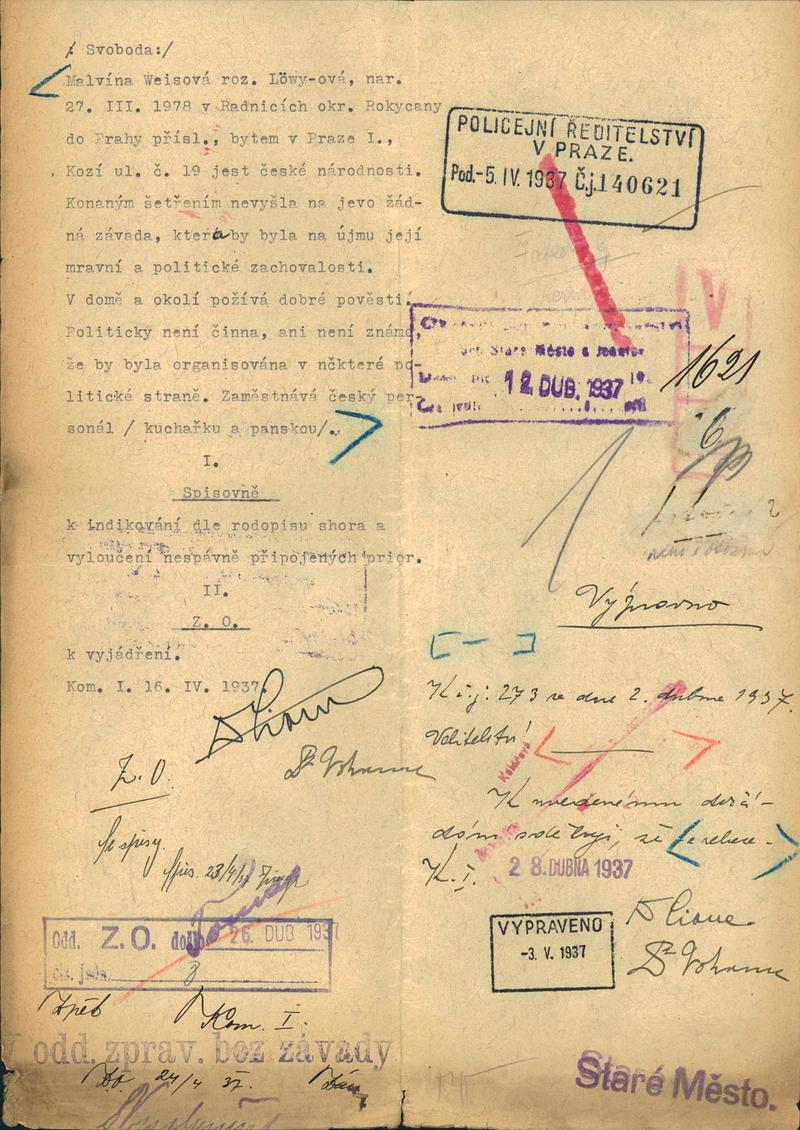 Nationalarchiv Prag > Polizei-Direktion Prag > 1941-1950 > W > Weissová Malvína