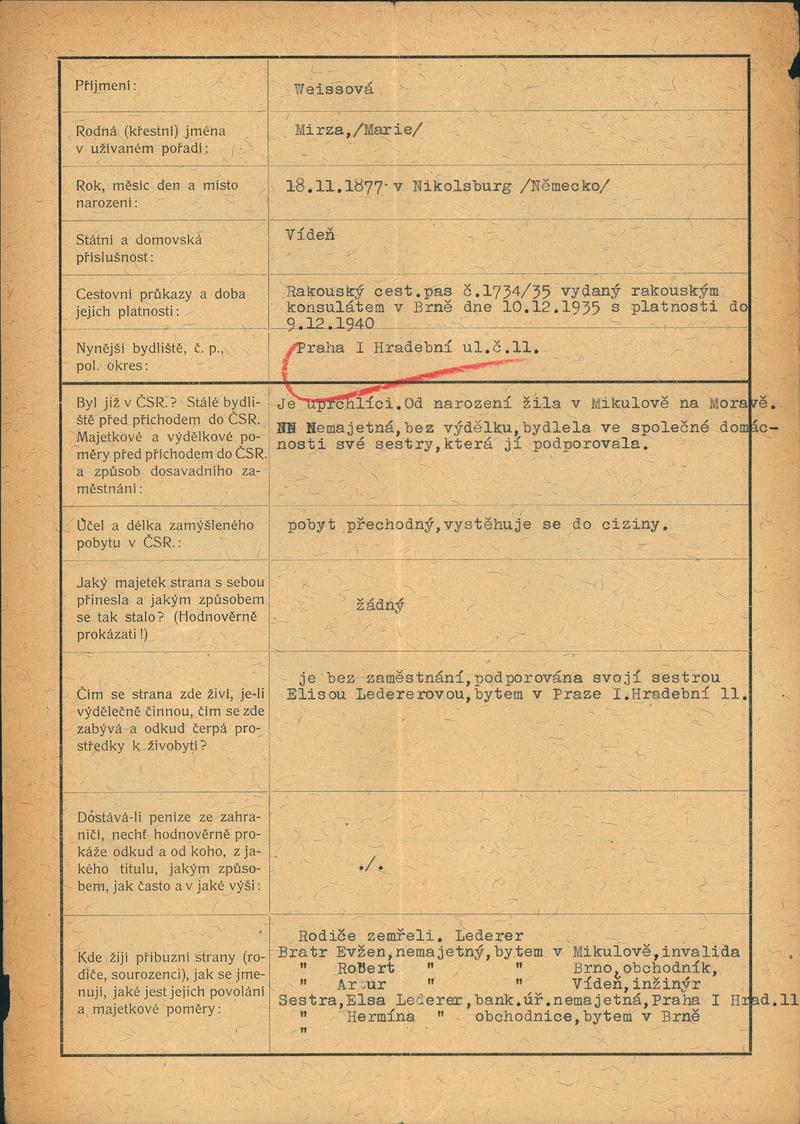 Nationalarchiv Prag > Polizei-Direktion Prag > 1941-1950 > W > Weissová Mirsa