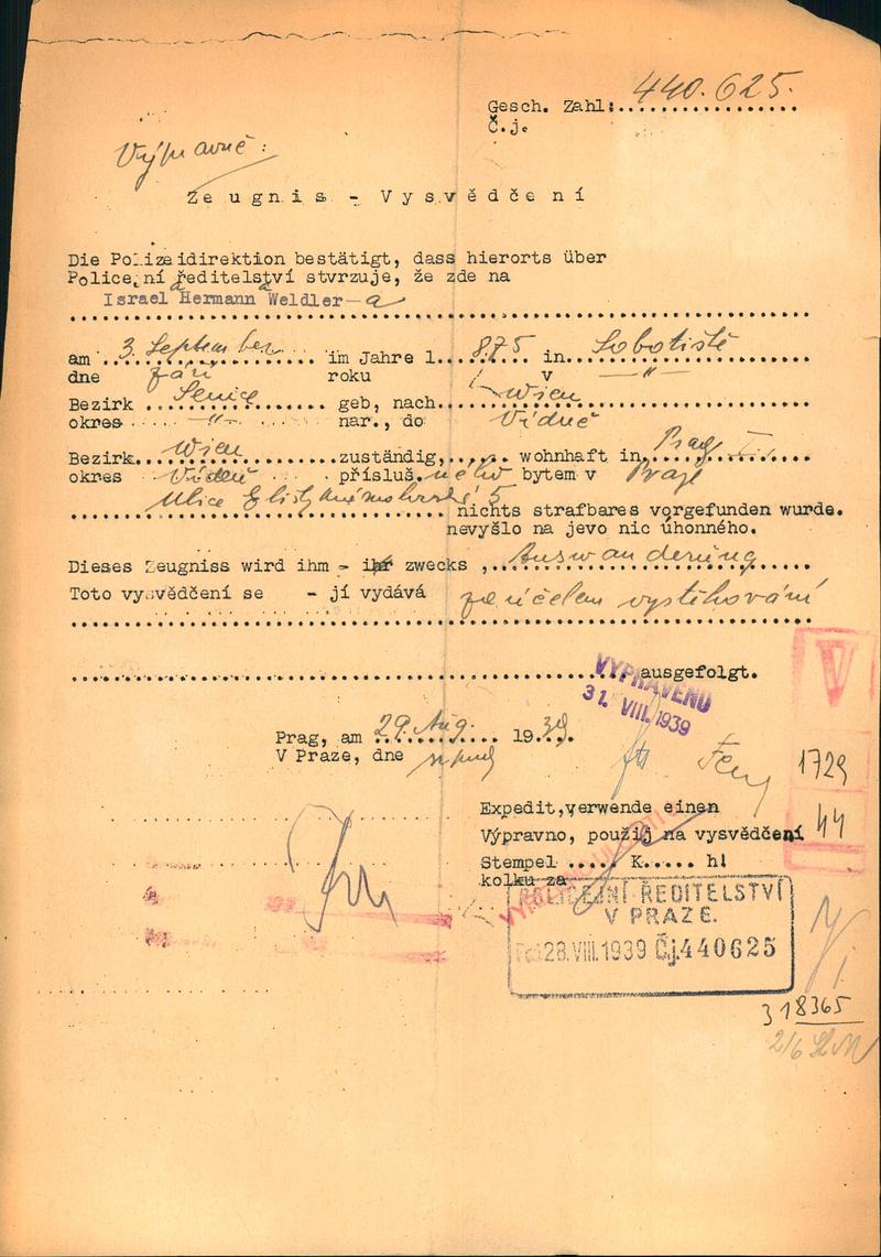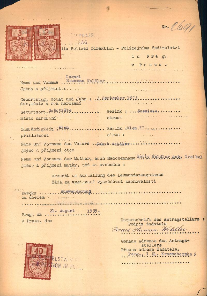 Nationalarchiv Prag > Polizei-Direktion Prag > 1941-1950 > W > Weldler Heřman