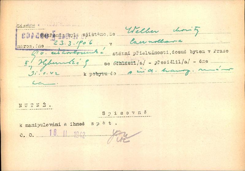 Nationalarchiv Prag > Polizei-Direktion Prag > 1941-1950 > W > Welber Mořic