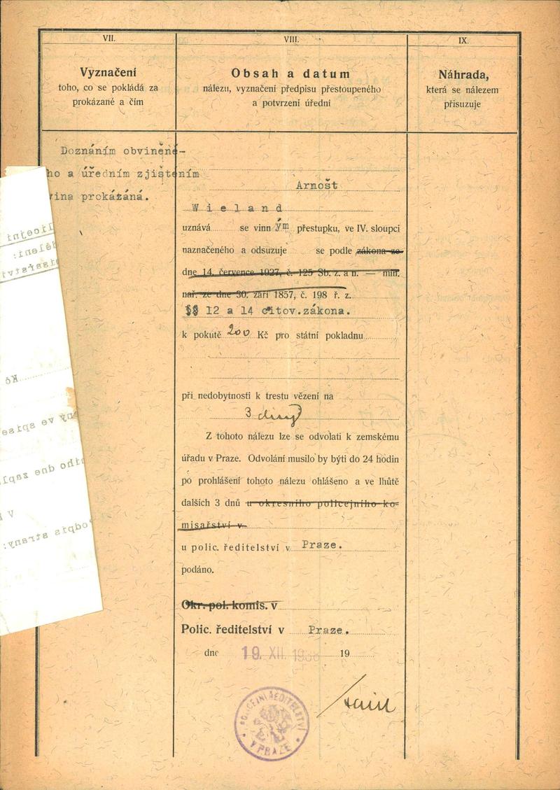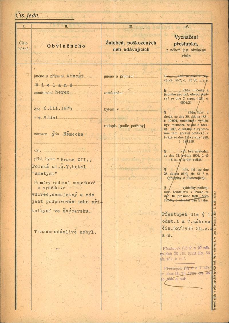 Nationalarchiv Prag > Polizei-Direktion Prag > 1941-1950 > W > Wieland Arnošt