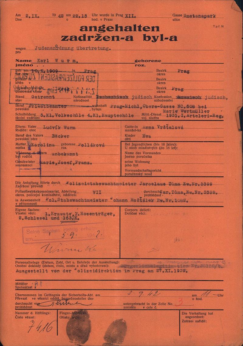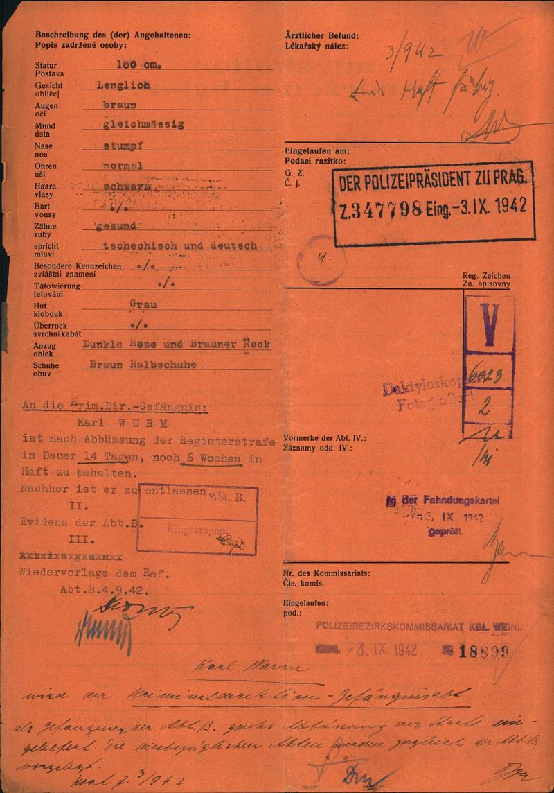 Nationalarchiv Prag > Polizei-Direktion Prag > 1941-1950 > W > Wurm Karel