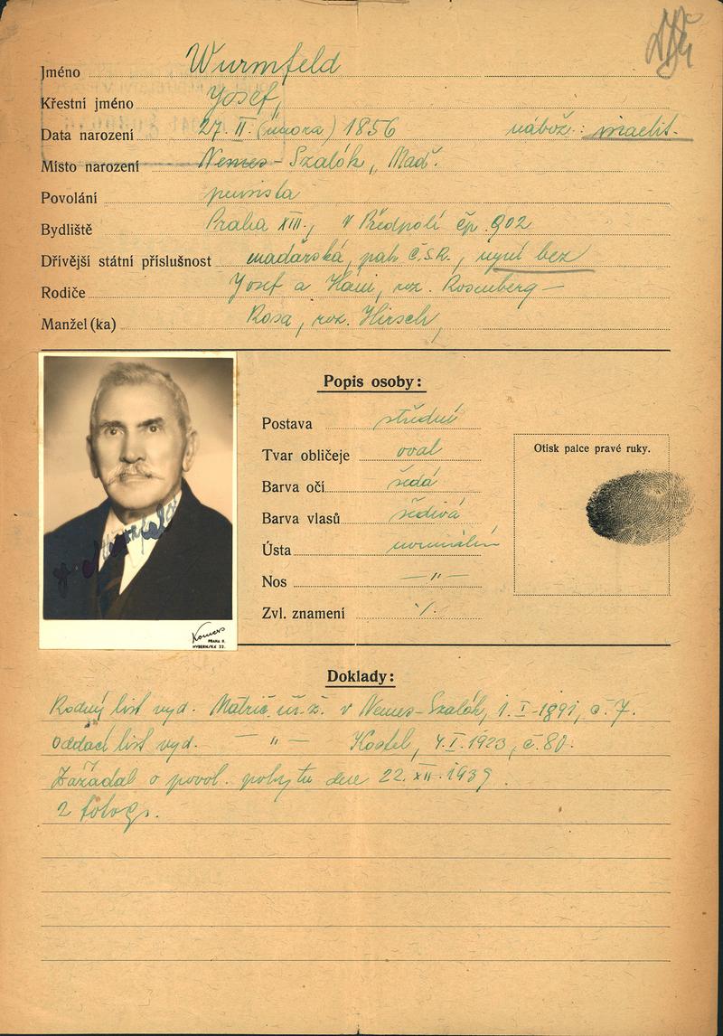 Nationalarchiv Prag > Polizei-Direktion Prag > 1941-1950 > W > Wurmfeld Josef