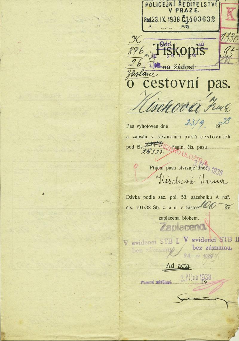 Nationalarchiv Prag > Polizei-Direktion Prag > 1931-1940 > K > Kischová Irma
