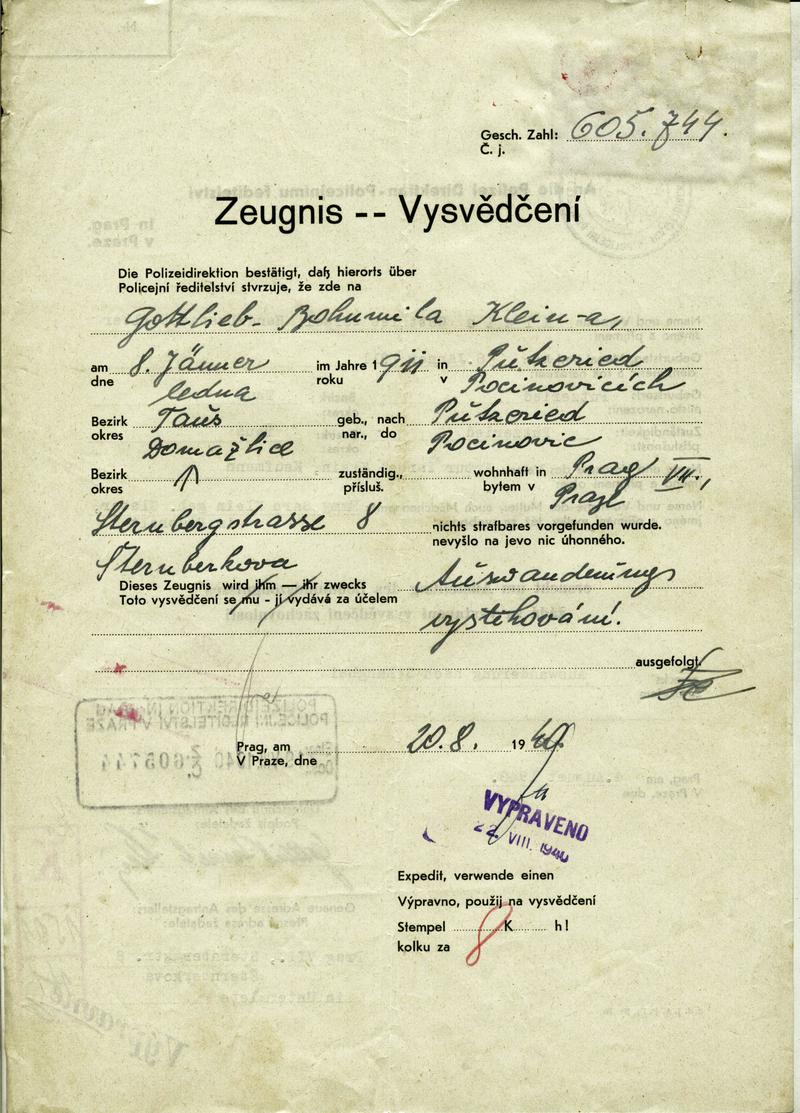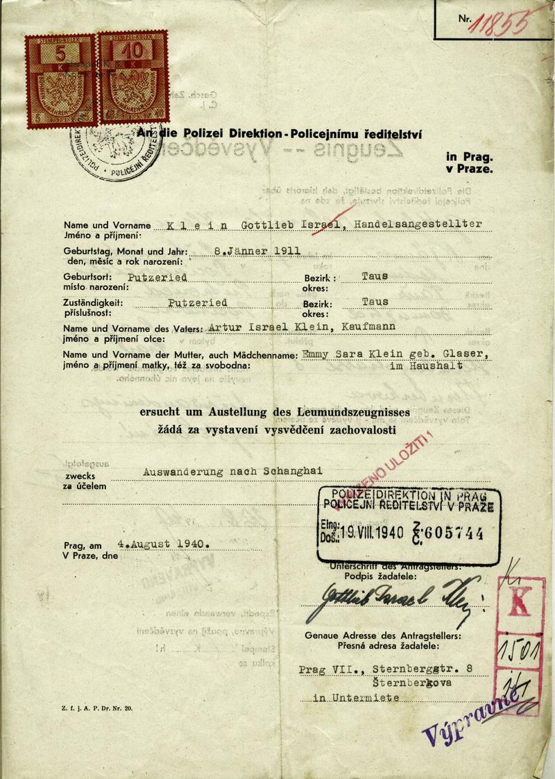 Nationalarchiv Prag > Polizei-Direktion Prag > 1931-1940 > K > Klein Gottlieb