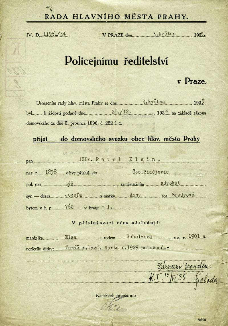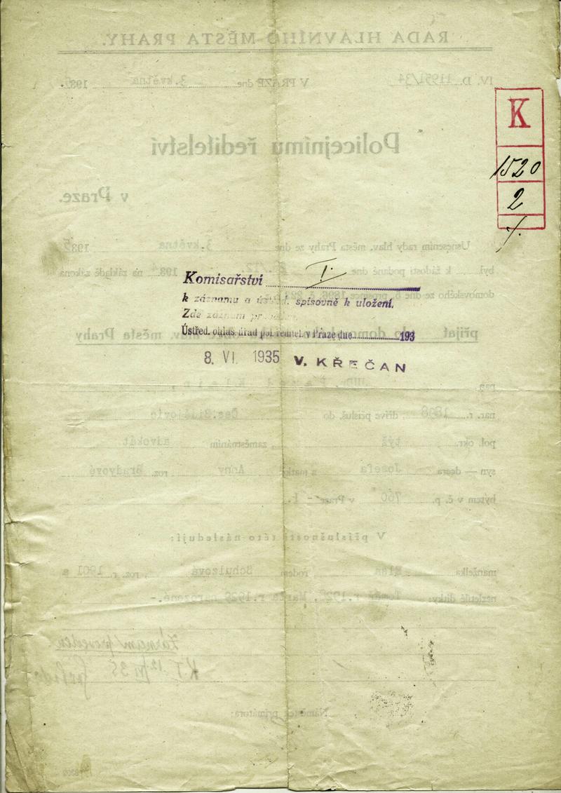 Nationalarchiv Prag > Polizei-Direktion Prag > 1931-1940 > K > Klein Pavel