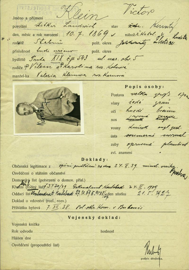 Nationalarchiv Prag > Polizei-Direktion Prag > 1931-1940 > K > Klein Viktor