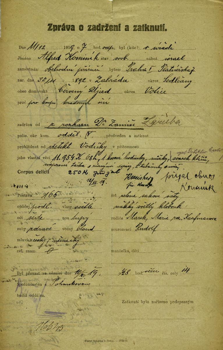 Nationalarchiv Prag > Polizei-Direktion Prag > 1931-1940 > K > Kominik Alfred