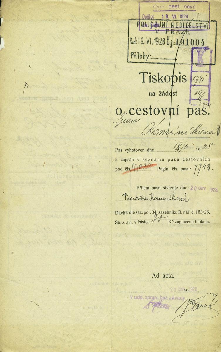 Nationalarchiv Prag > Polizei-Direktion Prag > 1931-1940 > K > Kominíková Františka