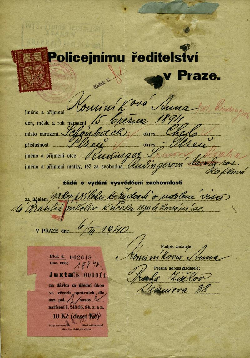 Nationalarchiv Prag > Polizei-Direktion Prag > 1931-1940 > K > Kominiková Anna