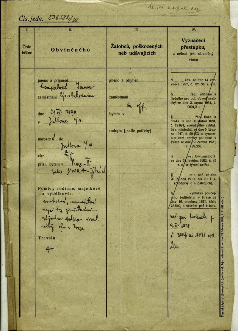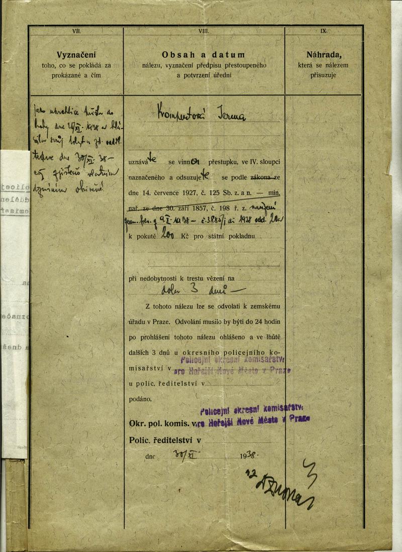 Nationalarchiv Prag > Polizei-Direktion Prag > 1931-1940 > K > Kompertová Irma