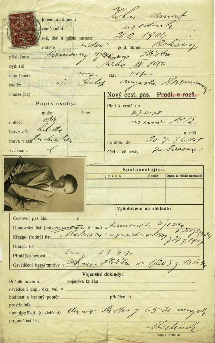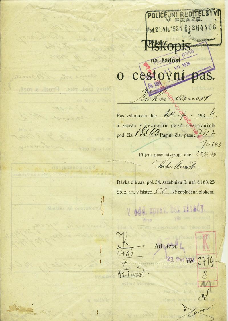 Nationalarchiv Prag > Polizei-Direktion Prag > 1931-1940 > K > Kohn Arnošt