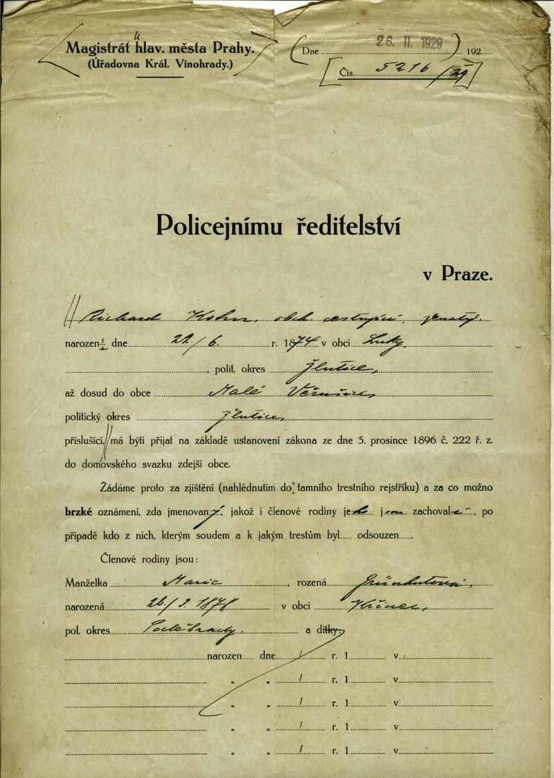Nationalarchiv Prag > Polizei-Direktion Prag > 1931-1940 > K > Kohn Richard