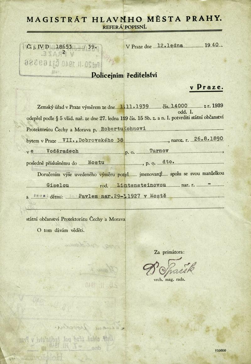 Nationalarchiv Prag > Polizei-Direktion Prag > 1931-1940 > K > Kohn Robert