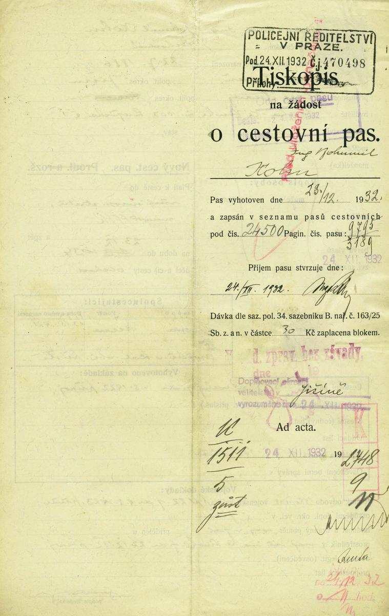 Nationalarchiv Prag > Polizei-Direktion Prag > 1931-1940 > K > Kohn Bohumil