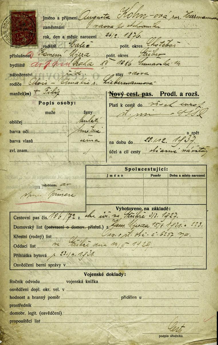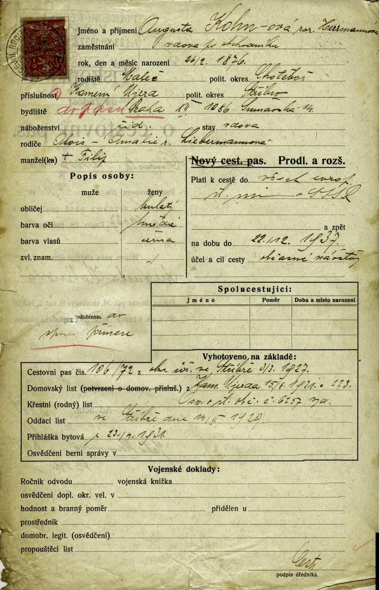 Nationalarchiv Prag > Polizei-Direktion Prag > 1931-1940 > K > Kohnová Augusta
