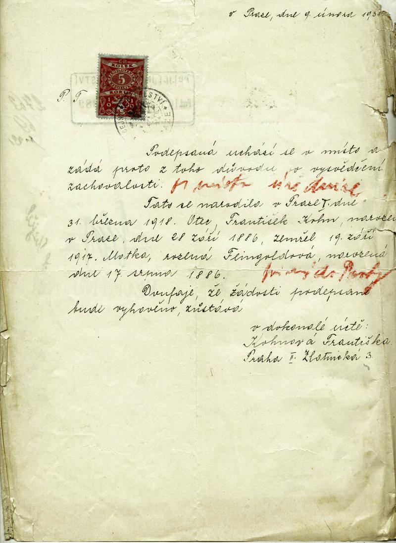 Nationalarchiv Prag > Polizei-Direktion Prag > 1931-1940 > K > Kohnová Františka