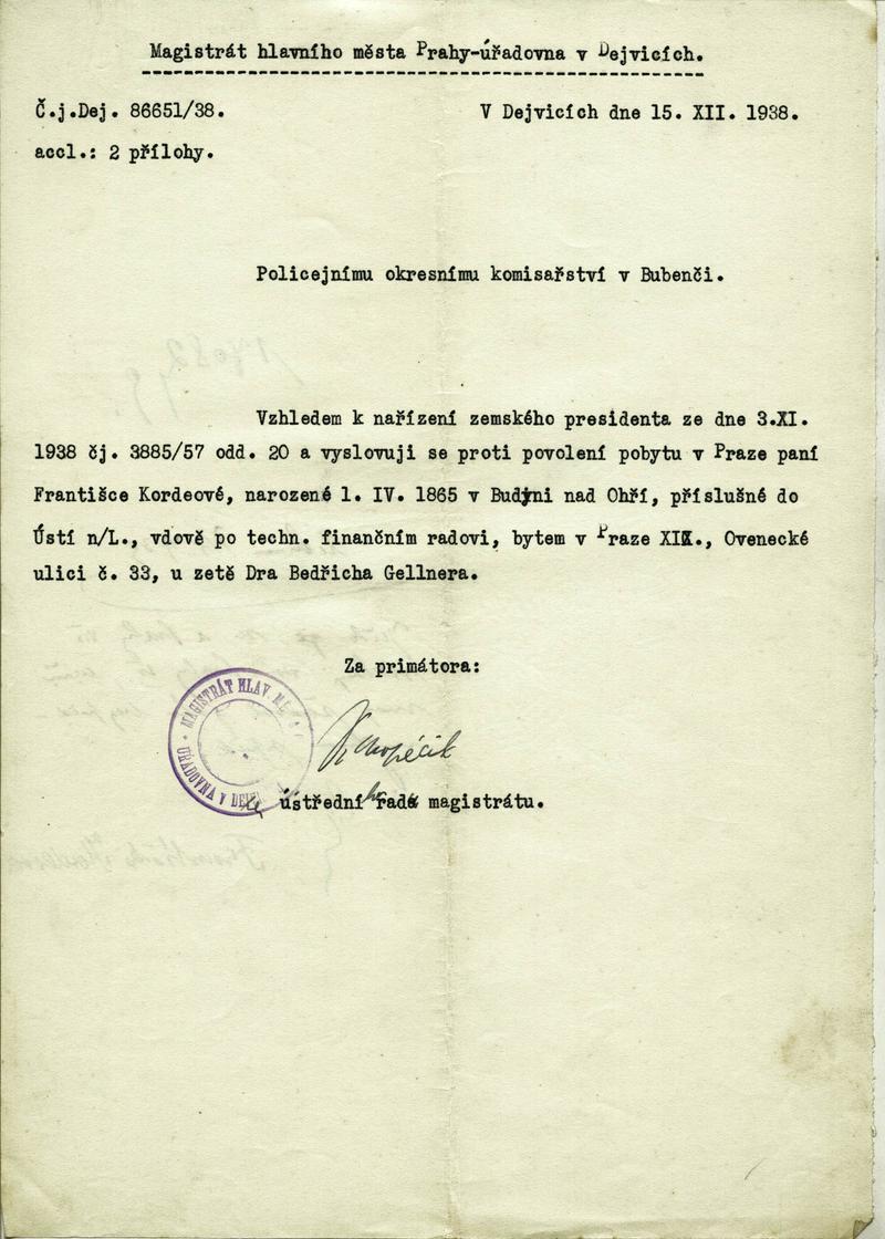 Nationalarchiv Prag > Polizei-Direktion Prag > 1931-1940 > K > Kordeová Františka