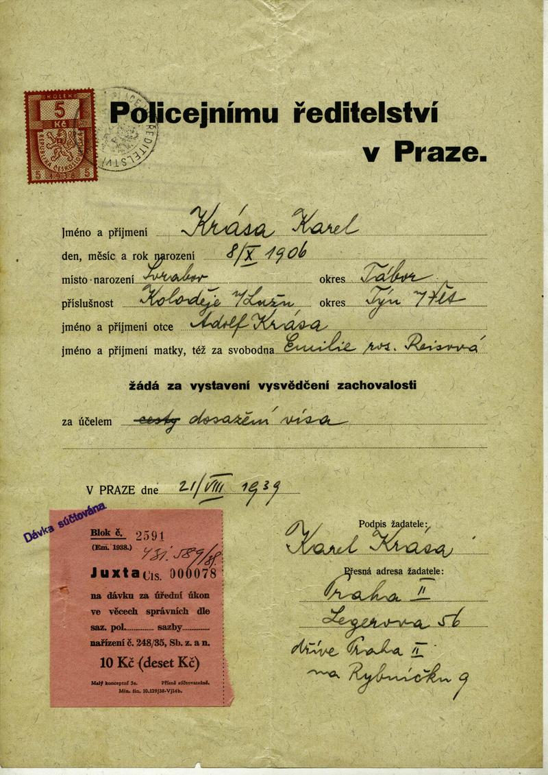 Nationalarchiv Prag > Polizei-Direktion Prag > 1931-1940 > K > Krása Karel