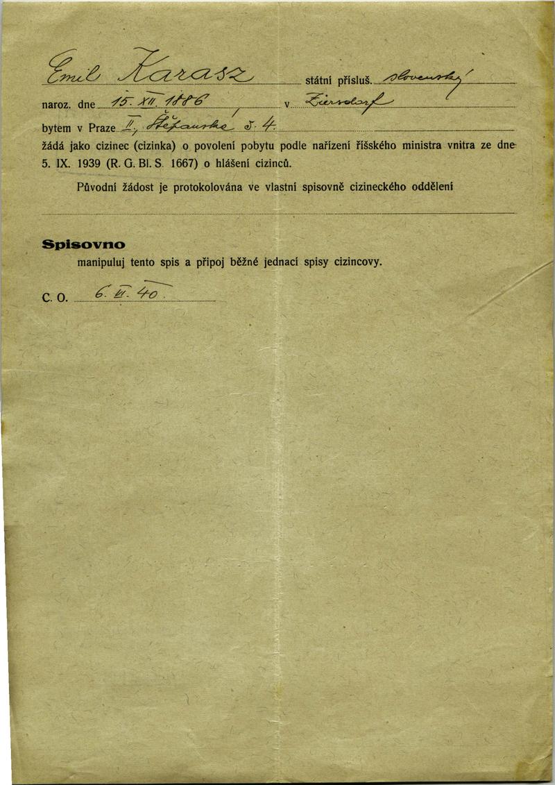 Nationalarchiv Prag > Polizei-Direktion Prag > 1931-1940 > K > Karasz Emil