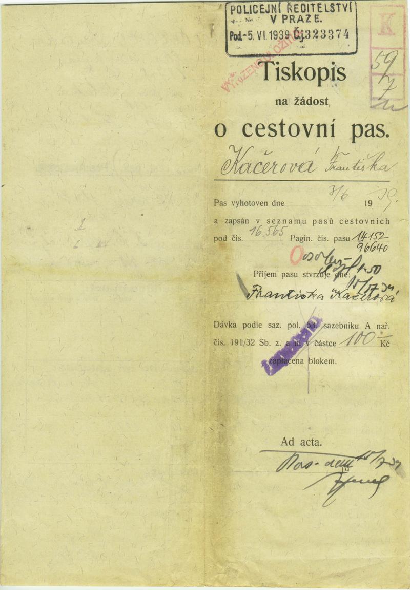 Nationalarchiv Prag > Polizei-Direktion Prag > 1931-1940 > K > Kačerová Františka