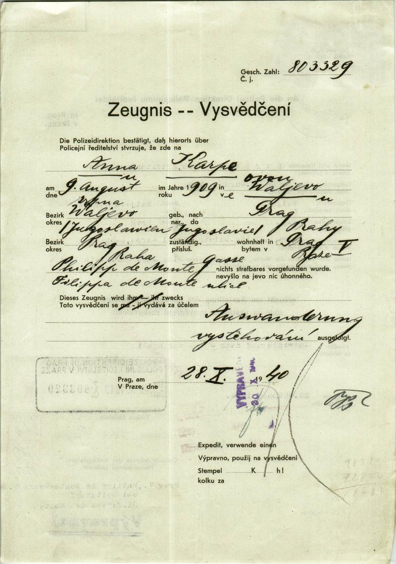 Nationalarchiv Prag > Polizei-Direktion Prag > 1931-1940 > K > Karpeová Anna