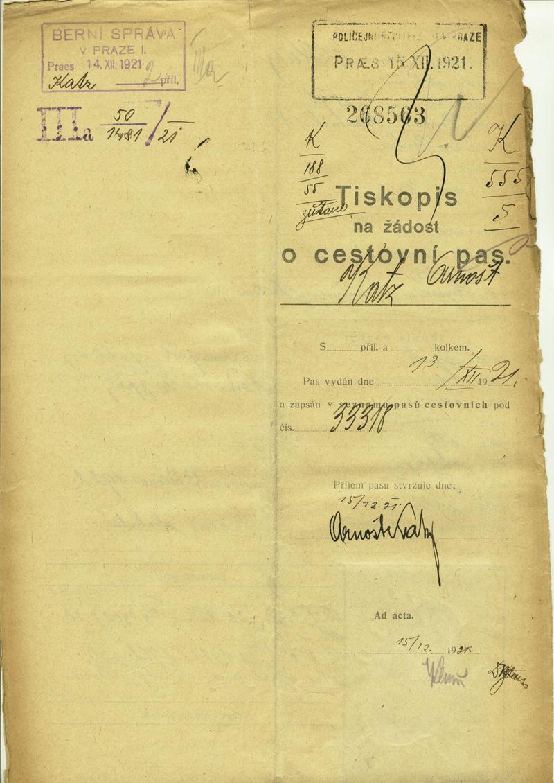 Nationalarchiv Prag > Polizei-Direktion Prag > 1941-1950 > K > Katz Arnošt
