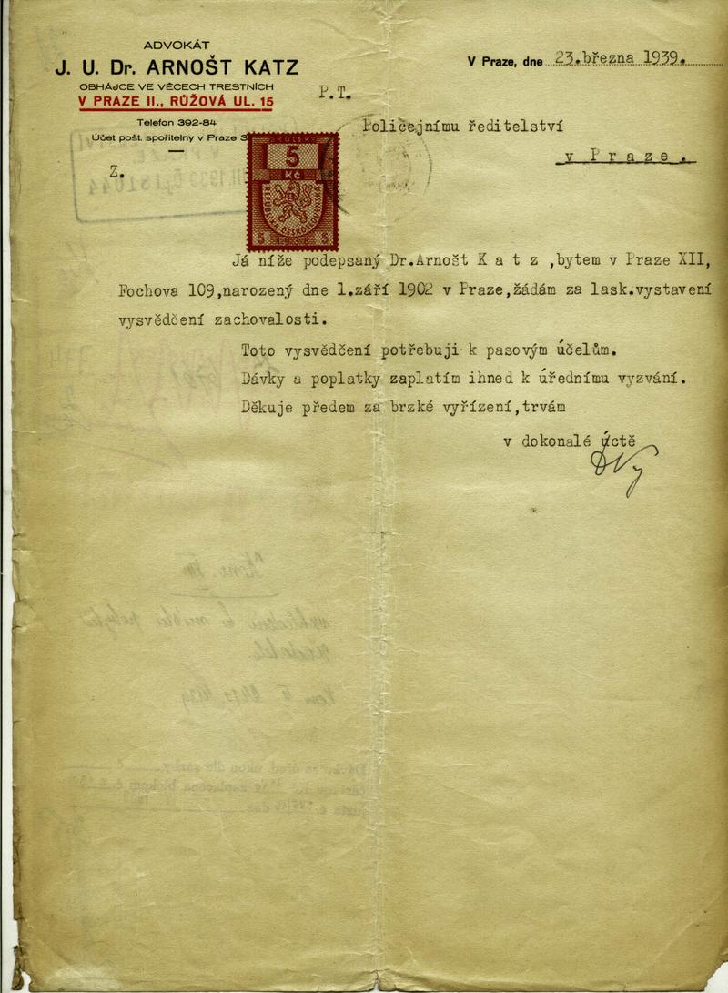 Nationalarchiv Prag > Polizei-Direktion Prag > 1941-1950 > K > Katz Arnošt