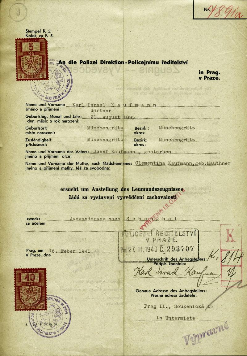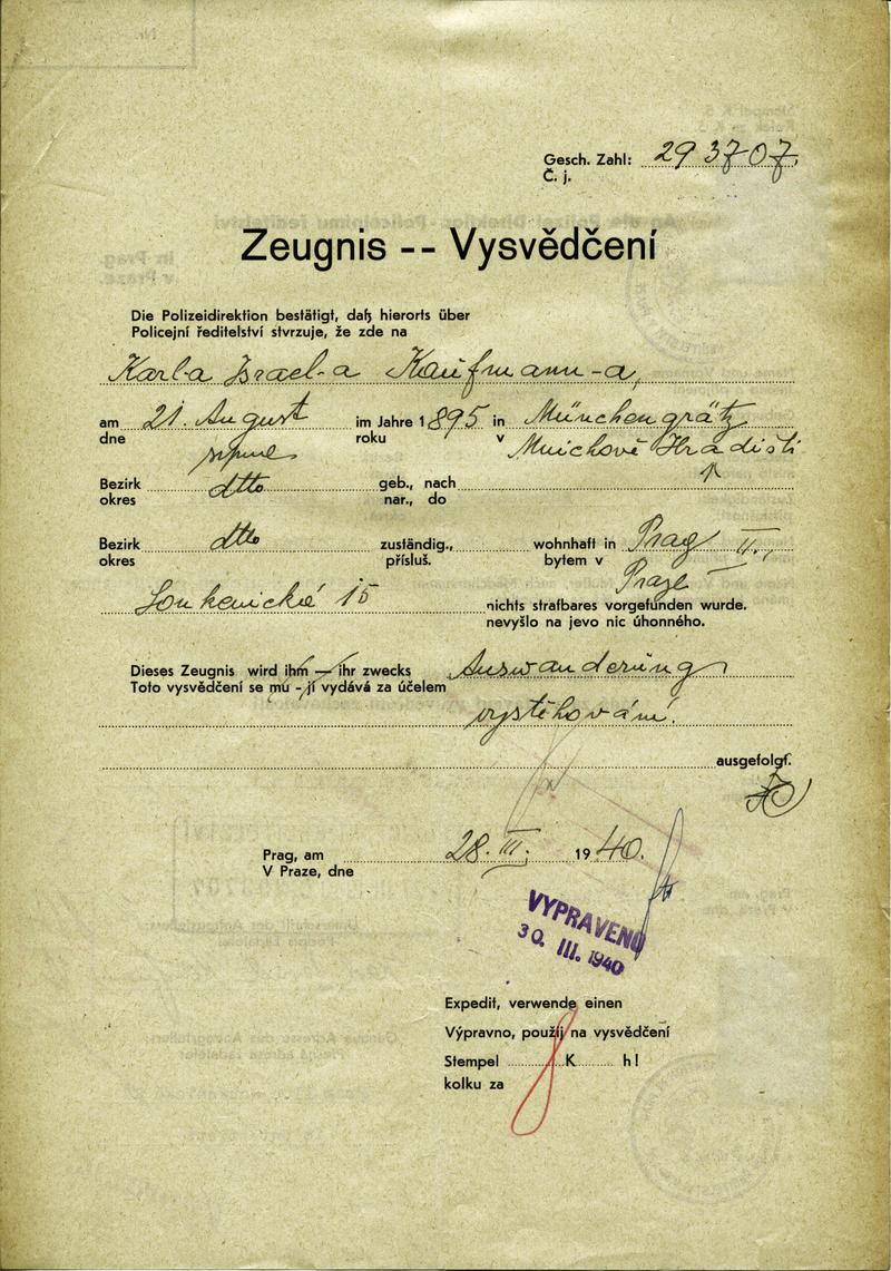 Nationalarchiv Prag > Polizei-Direktion Prag > 1941-1950 > K > Kaufmann Karel