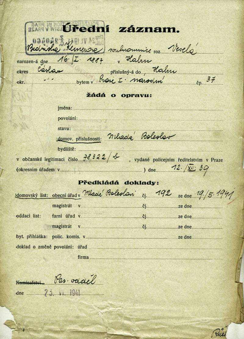 Nationalarchiv Prag > Polizei-Direktion Prag > 1941-1950 > K > Keinerová Bedřiška