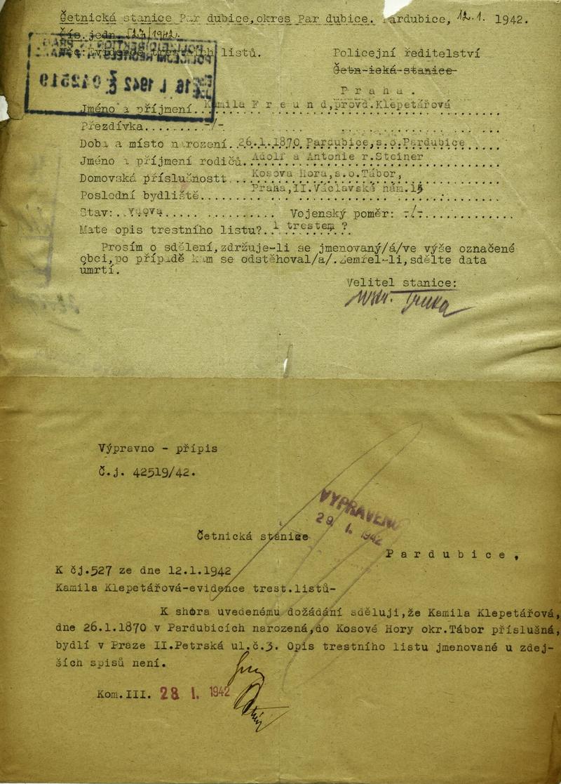 Nationalarchiv Prag > Polizei-Direktion Prag > 1941-1950 > K > Klepetářová Kamila