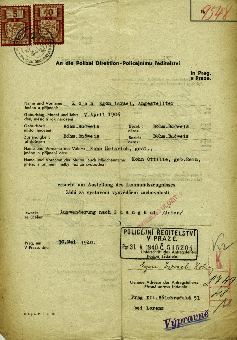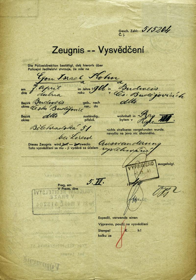 Nationalarchiv Prag > Polizei-Direktion Prag > 1941-1950 > K > Kohn Egon