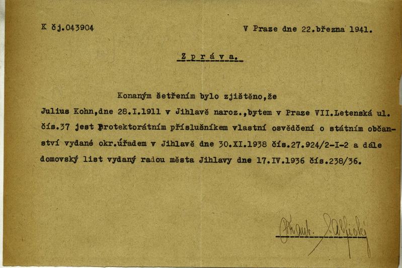 Nationalarchiv Prag > Polizei-Direktion Prag > 1941-1950 > K > Kohn Julius