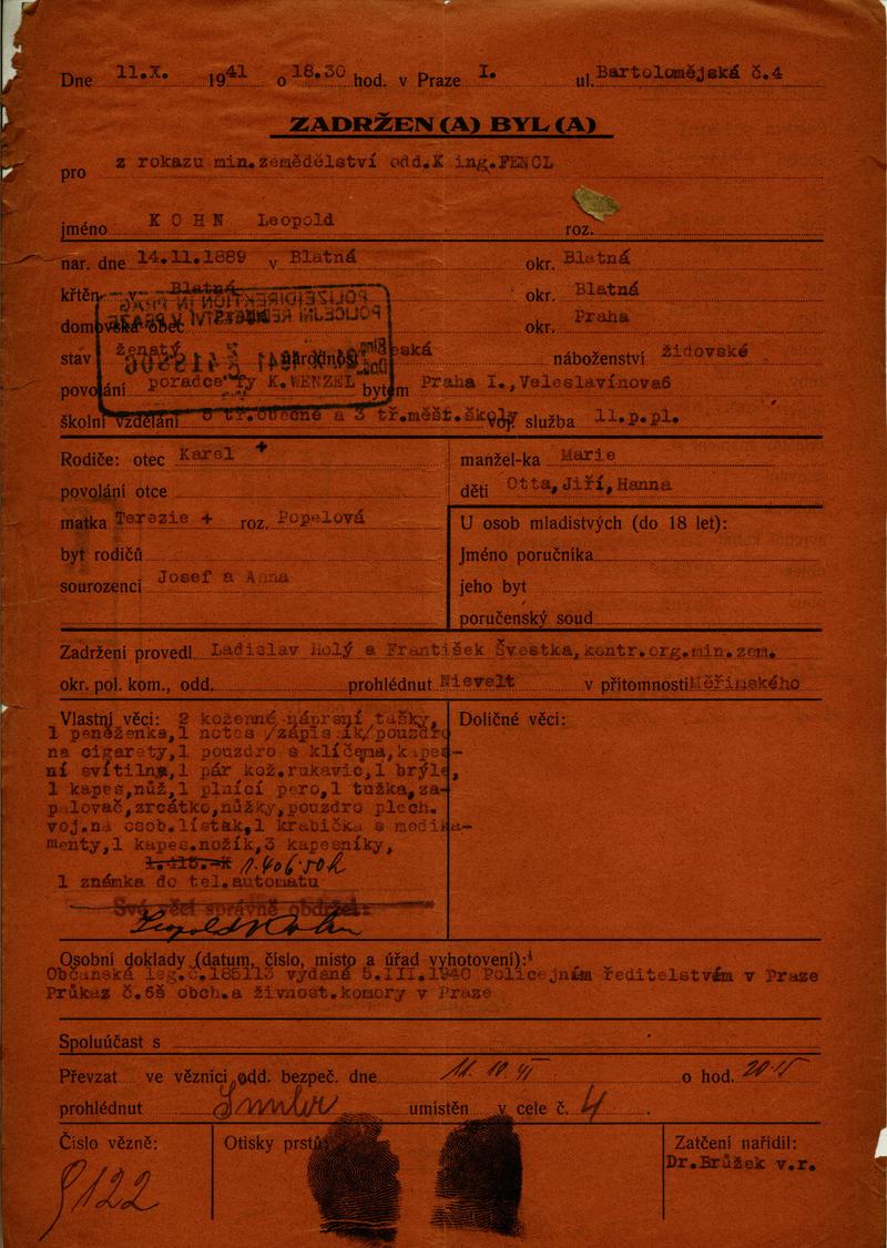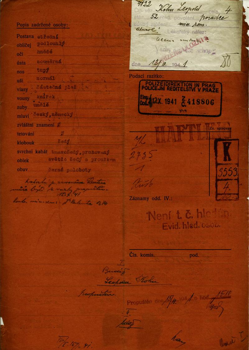 Nationalarchiv Prag > Polizei-Direktion Prag > 1941-1950 > K > Kohn Leopold